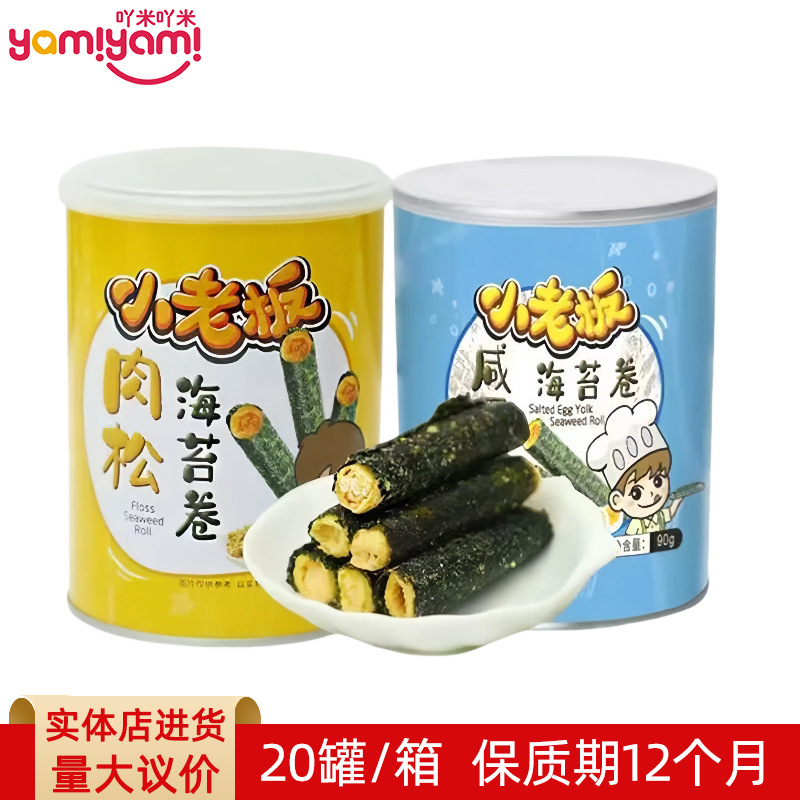 小老板90g肉松味海苔卷罐装紫菜即食夹心脆家庭休闲网红零食