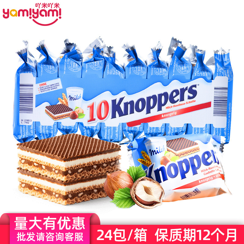 ドイツの輸入レジャースナックメーカーは、同じ種類のKnoppers牛乳榛子チョコレートのウエハー250gを持っています。