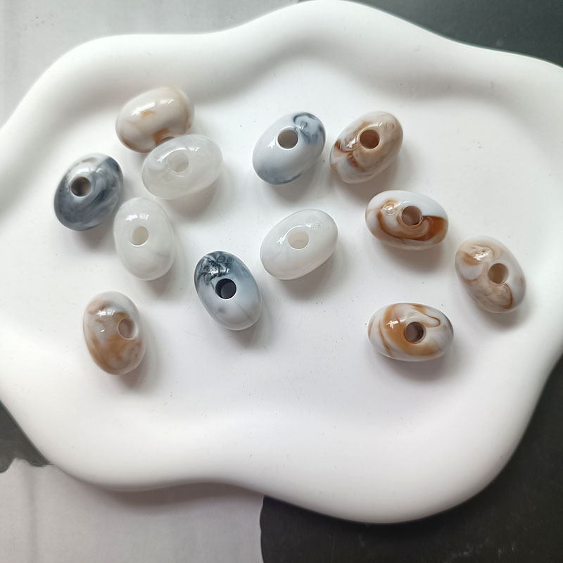 アクリルビーズの大きな穴は貝殻の二色の煙感楕円オリーブビーズdiyビーズの箱の補助材料の部品をまねます。