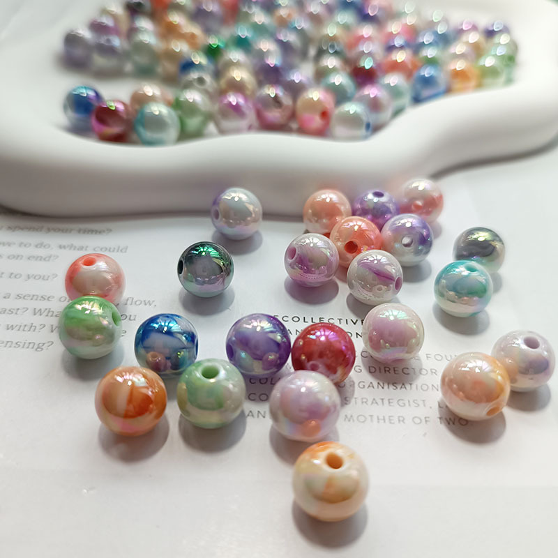 メーカー直販高uvメッキ七彩二色ぼかしアクリルビーズ直孔diy手作りビーズ材料散珠