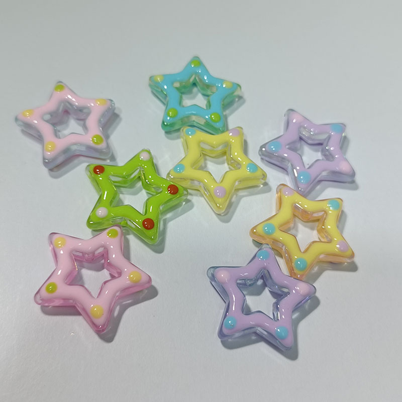 透かし彫り五角星手描きビーズアクリルdiyブレスレット携帯電話チェーン車掛けキーホルダーアクセサリー