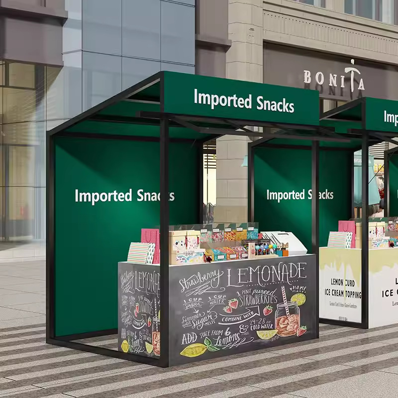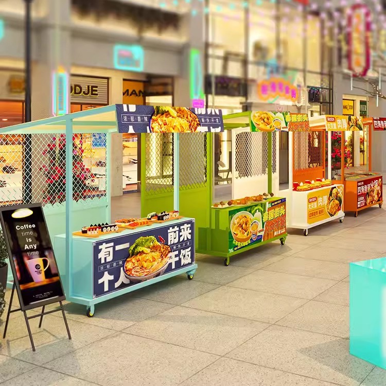 市場の屋台の金街のテントの屋台の展示棚の美食の間食の飲み物の屋台は美食の展示室の屋台を売ります。