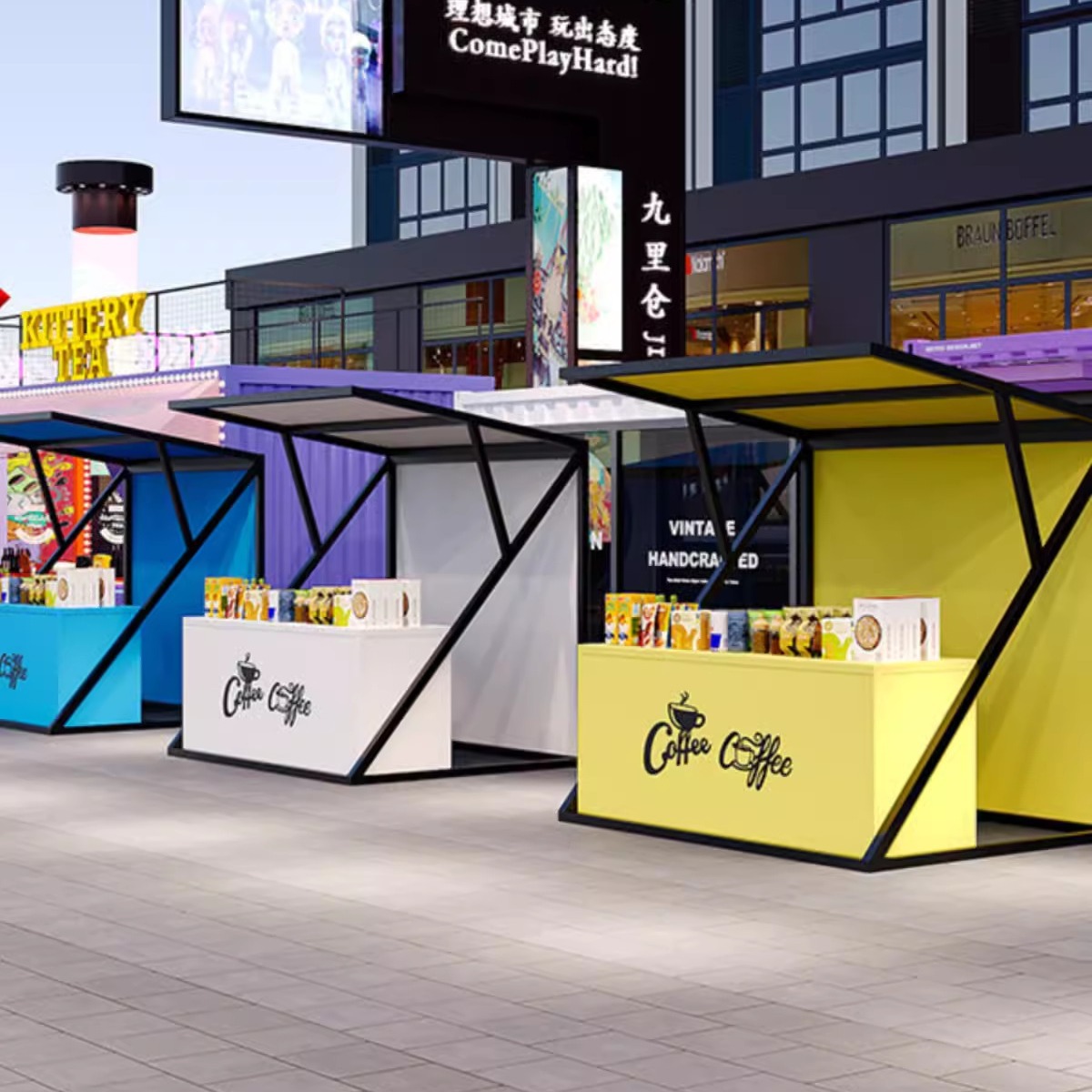 創意市場活動の露店台夜市の軽食の露店棚観光地区の広場の露店棚の移動販売棚