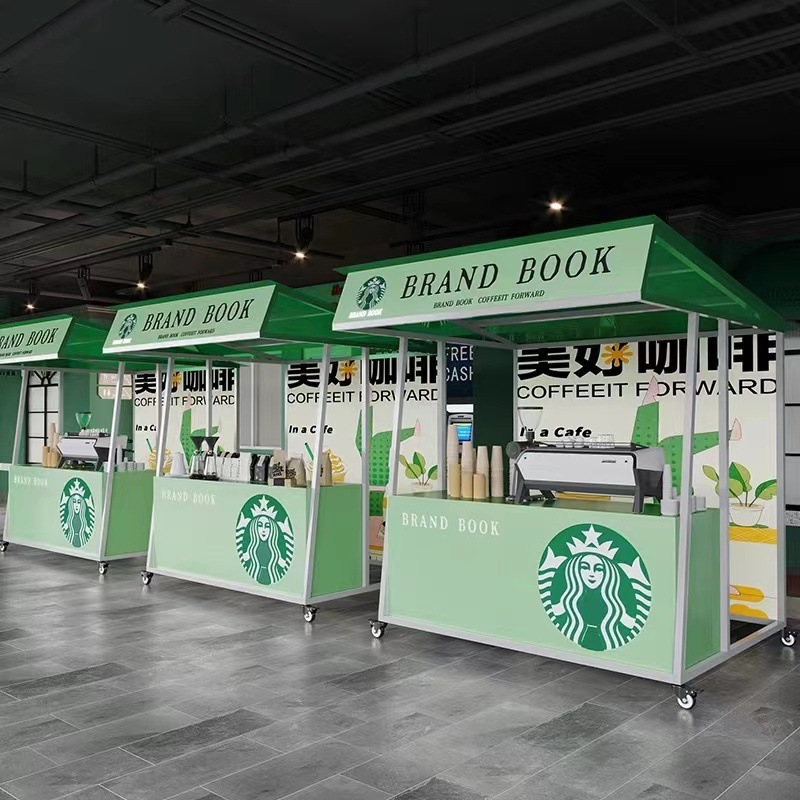 市場の屋台の金街のテントの屋台の展示棚の美食の間食の飲み物の屋台は美食の展示室の屋台を売ります。