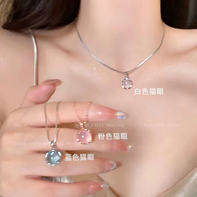 キャッツアイストーンラージサークル鎖骨チェーンレディーススーパーフェアリースイートハイエンドネックレスニッチデザインライトラグジュアリーネックレスアクセサリー