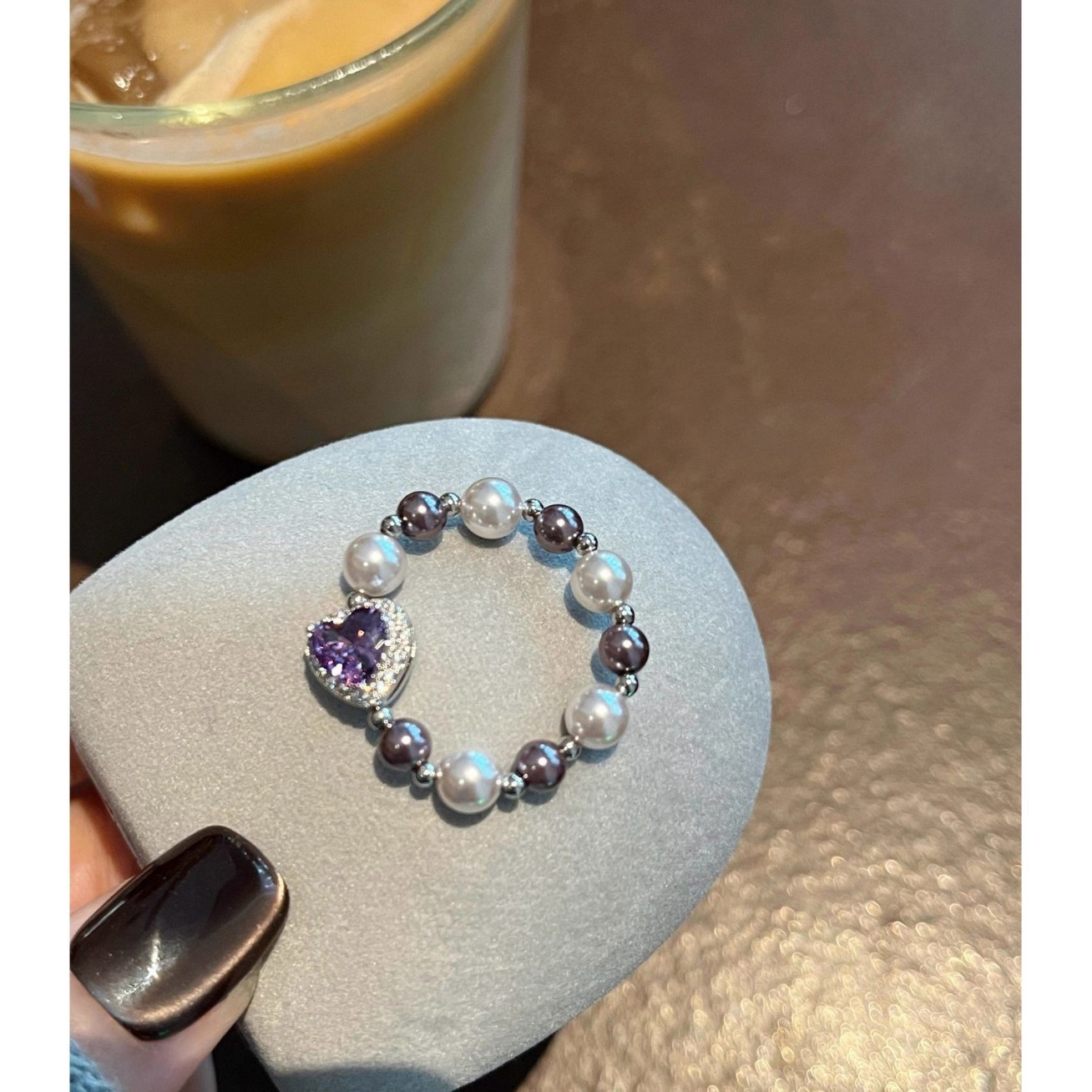フレンチシンプルパールスクエアジルコンストレッチリングライトラグジュアリーハイエンドリング気質ファッショナブルで多用途な女性用ハンドアクセサリー