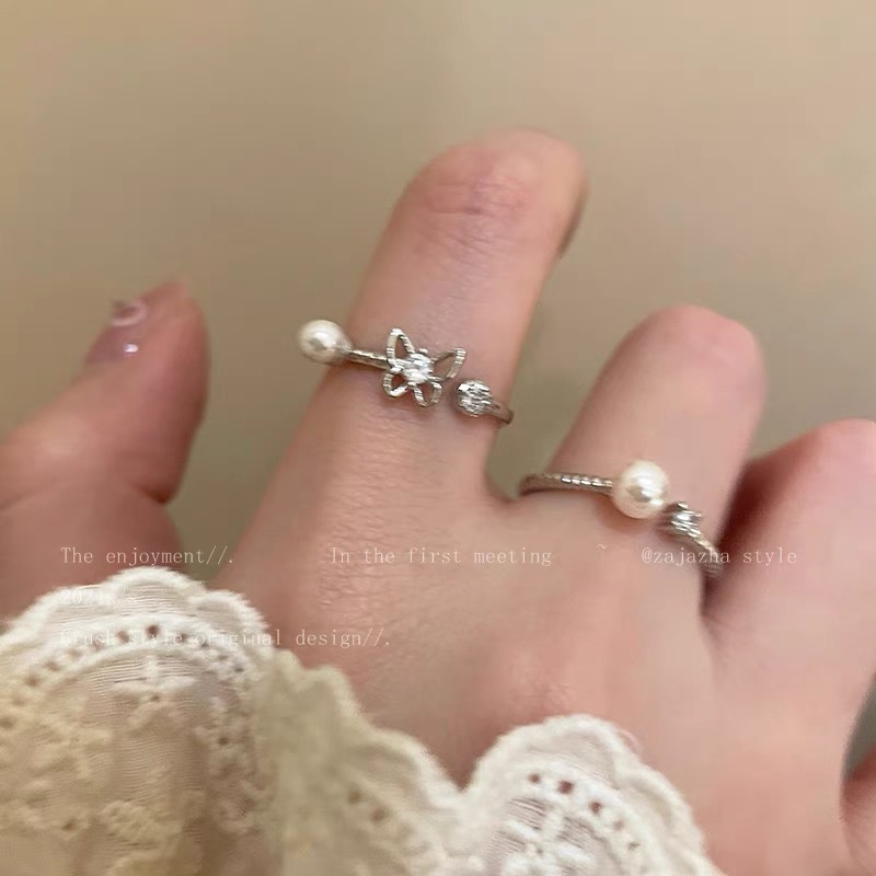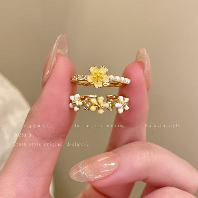 デイジーフラワーパールリング女性のための 2025 新しいニッチデザイン絶妙な人差し指リングライト高級ハイエンドリングトレンド
