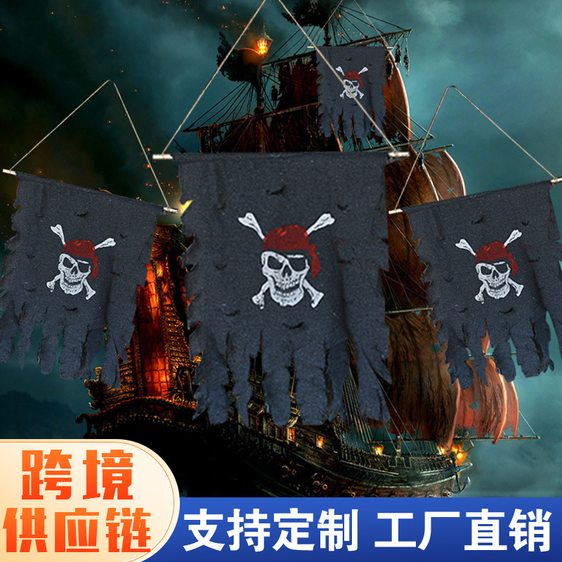 ハロウィン海賊旗パイレーツオブカリビアン吊り旗小さな旗リネンゴーストフェスティバル装飾小道具ペンダント