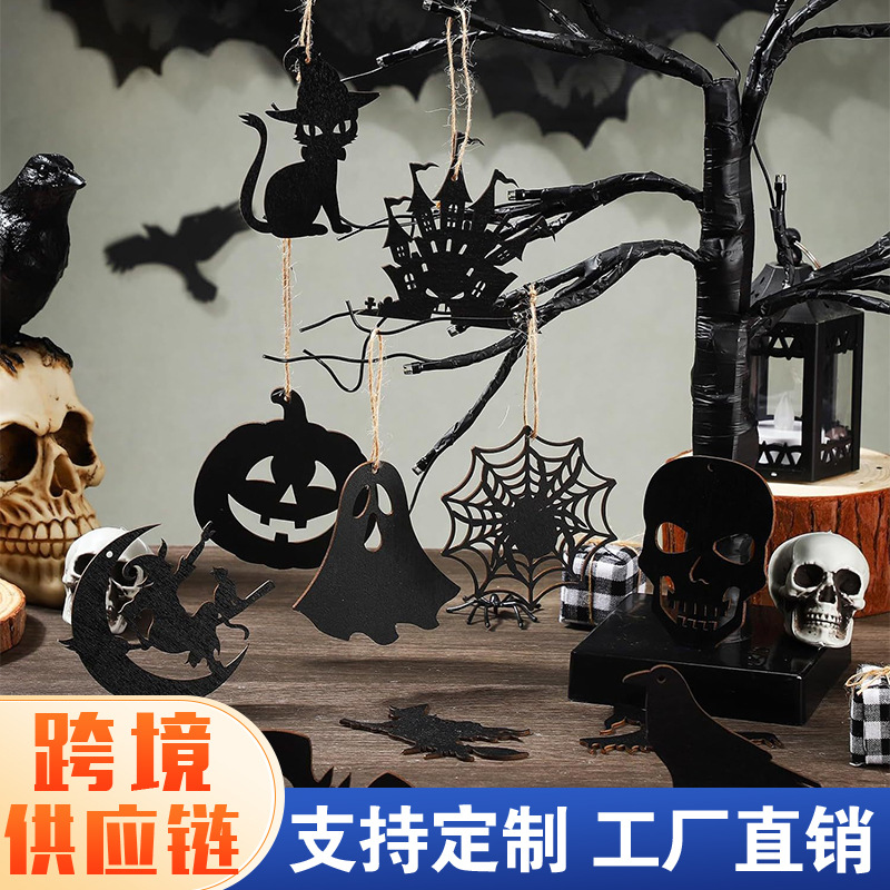 クロスボーダー新製品ハロウィン木製スライス中空装飾ハロウィンツリーハンギングタグホームパーティー装飾