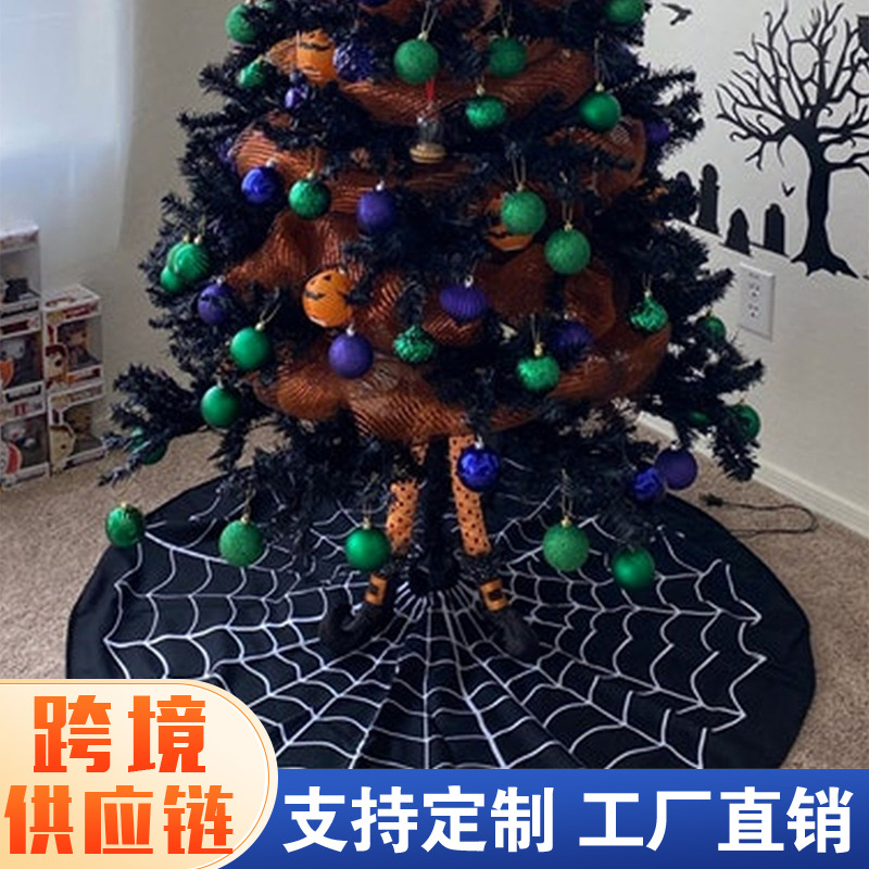クロスボーダーハロウィンツリースカート装飾白クモの巣クリスマスツリーエプロンお祭り雰囲気ツリー装飾付き