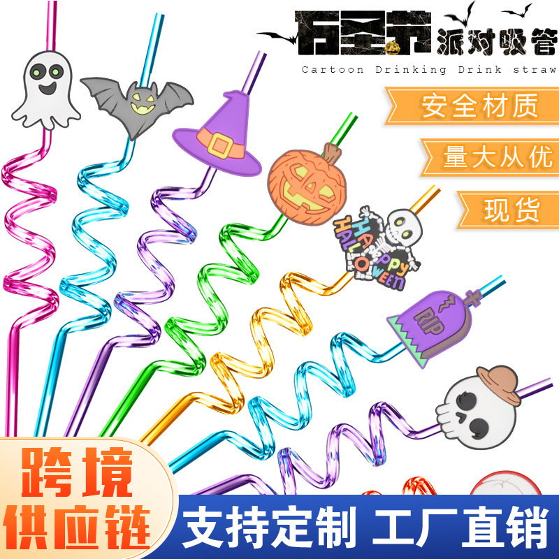 クロスボーダーハロウィンパーティーストロー再利用可能なペットスパイラルストロー子供用ハロウィンパーティー装飾ギフト