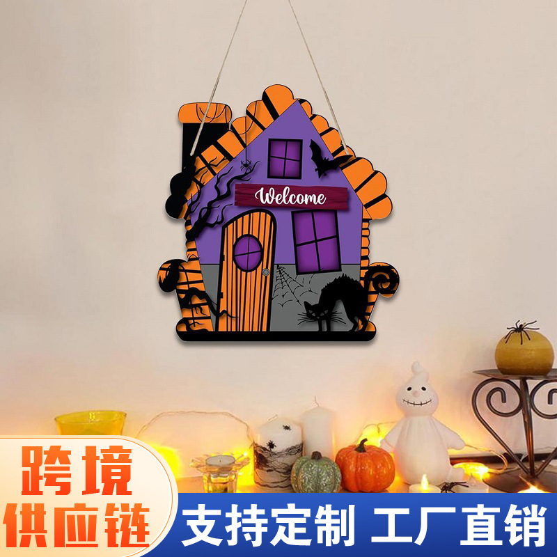 国境を越えた新製品ハロウィーン木製迎賓門装飾紫鬼屋猫掛門標識ハロウィーン