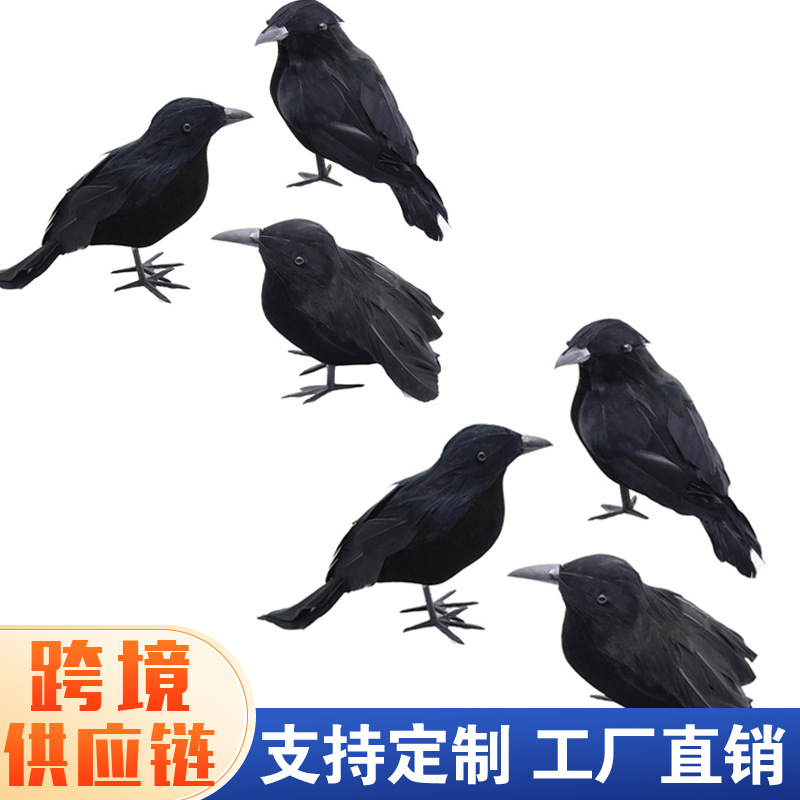 ハロウィーンカラスの装飾品は黒い小鳥の装飾品のシーンをシミュレートして道具を配置して道具を撮影します。