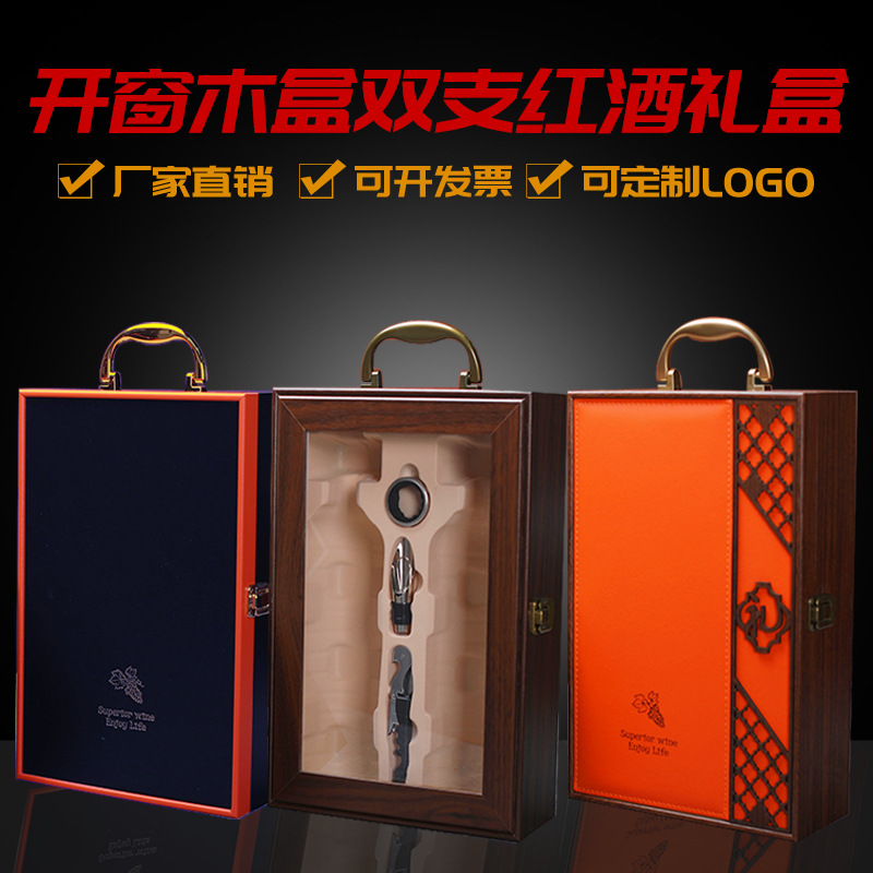 工場卸売ワインギフトボックス包装箱二本入れ皮箱現物ワイン箱カスタム2本ワイン箱