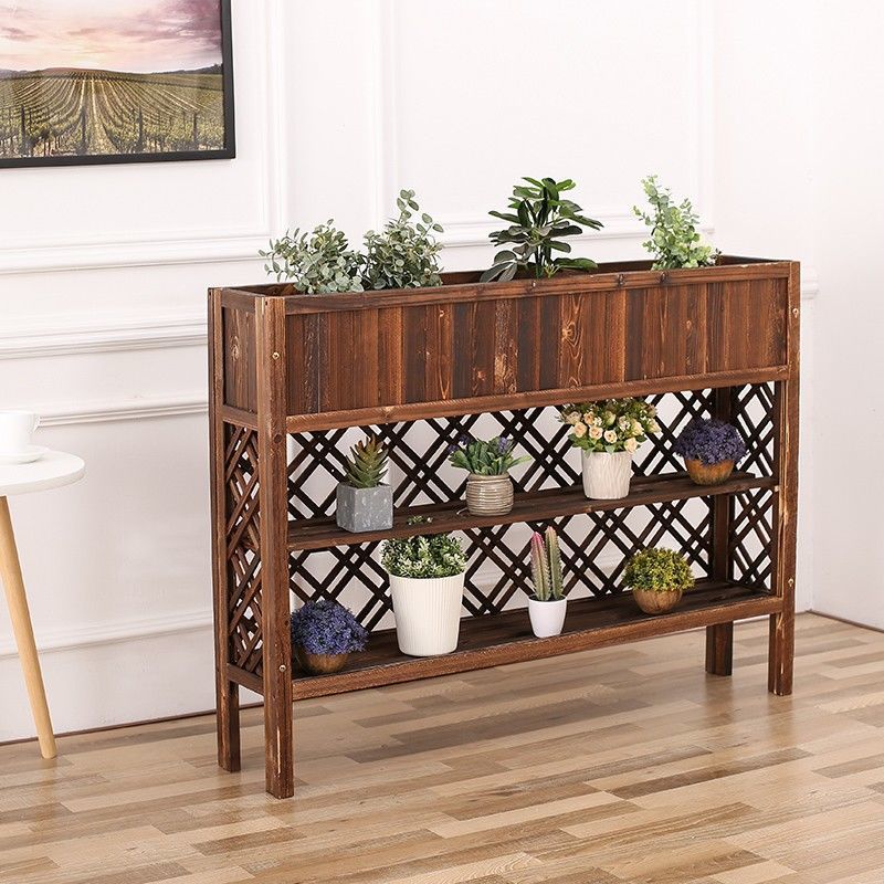 防錆木製パーティションフラワースタンド木製屋外バルコニー緑の植物植木鉢スタンドレストランリビングルームシンプルな家庭用フラワーチャンネルスタンド
