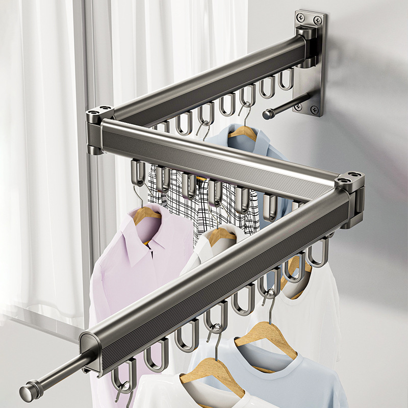 穴なし折り畳みハンガー家庭用ステルス伸縮壁掛けバルコニー日焼け神器室内外収縮凉衣棒