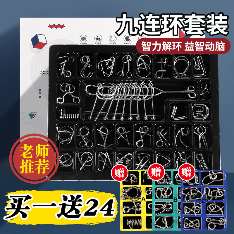 9連環セット 小学生向け知育玩具 ルーバンロック 6-12歳 子供用 知的解体リング 鉄リング 鉄バックルロック解除