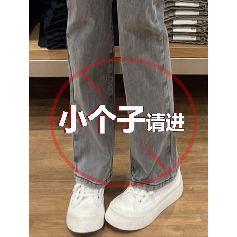 スモールジーンズスモークグレーホットガールハイウエストストレートレディース夏薄いルーズスリムワイドレッグロングパンツトレンディ