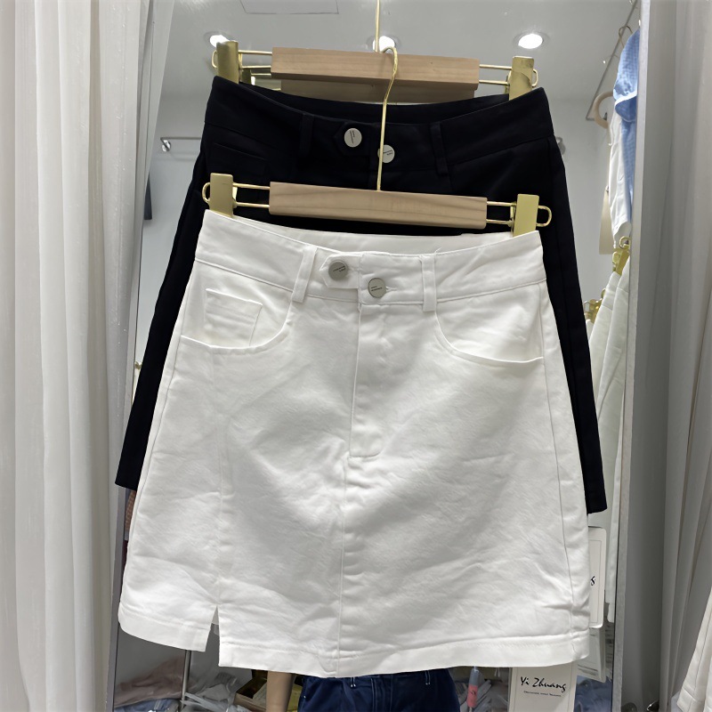 デニムスカート ハーフ丈 Aラインスカート 小柄な女性向け 2021年ヒップカバーショートスカート デザインニッチハイウエスト
