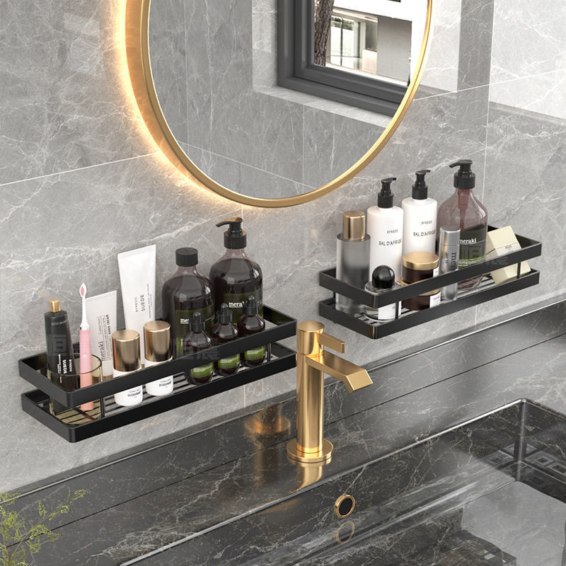洗面台収納ラック、パンチフリー、バスルームミラーフロントシェルフ、バスルーム用品壁掛け壁収納ラック