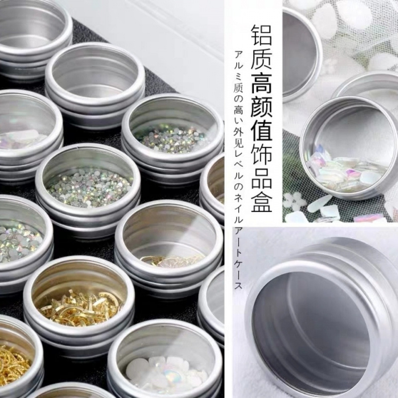 ネイルアートジュエリー収納ボックス日本のインターネットセレブ小さなアルミボックス窓付きポータブルハードカードツール小さな丸いボックスブラッシュ