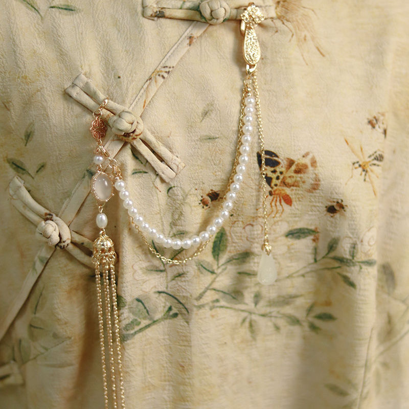 チャイナドレスタッセルアクセサリー中国古典パールアンティークブローチ胸飾りプレス襟スタイルエレガントなペンダントペンダント