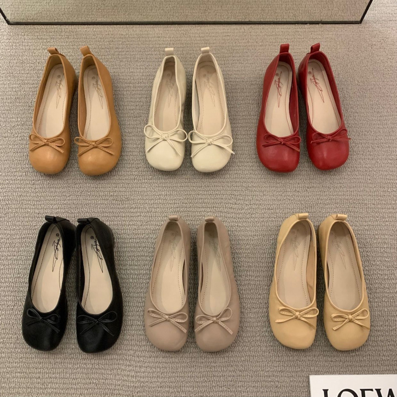浅口シングルシューズ、フラットソール、イブニングスタイル、スカートに合う優しい赤い靴、2023秋ローヒールビーニーシューズ