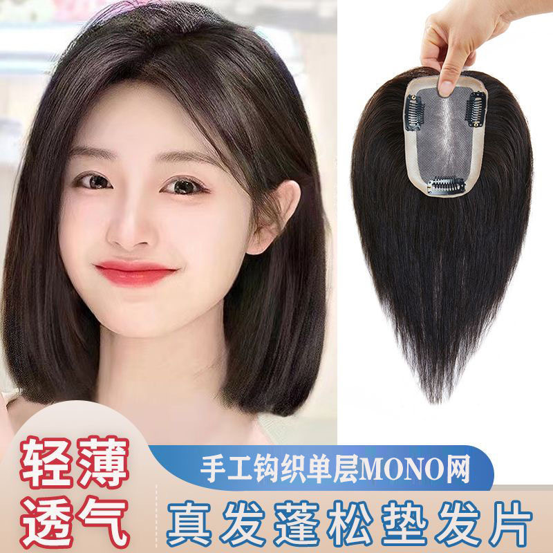 手織り立体かつらの頭上の増発量がふわふわしています。