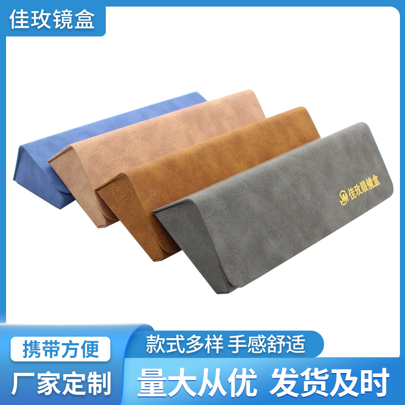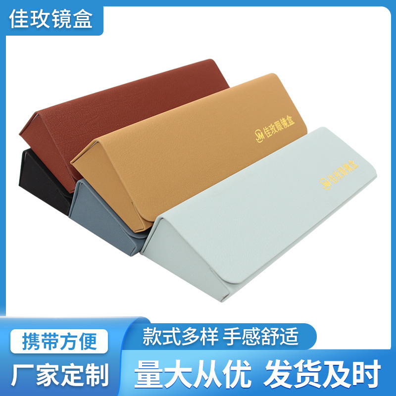 新型メガネケース卸売りレトロ三角光学メガネケース携帯圧壊手近視鏡ケースとロゴ