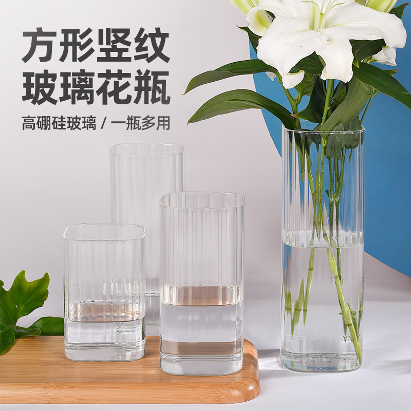 クリエイティブストライプガラス花瓶角レトロ形リビングルーム水養富貴竹異形瓶ガラス高級感花瓶