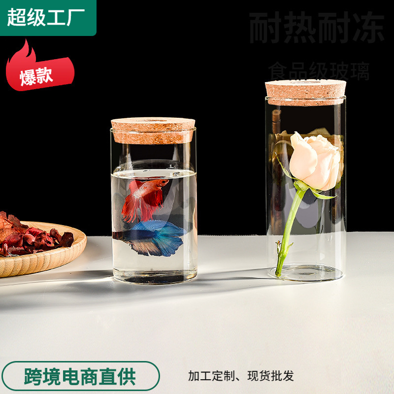 高透円形ガラス金魚鉢客間水培小金魚生態シリンダーオフィス微景観闘魚ガラス缶