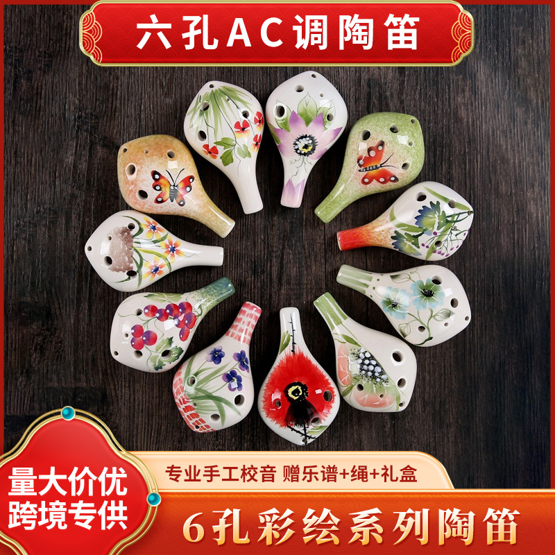 新品六穴ac調陶笛6穴中音c調陶笛初心者楽器初学笛色絵陶笛
