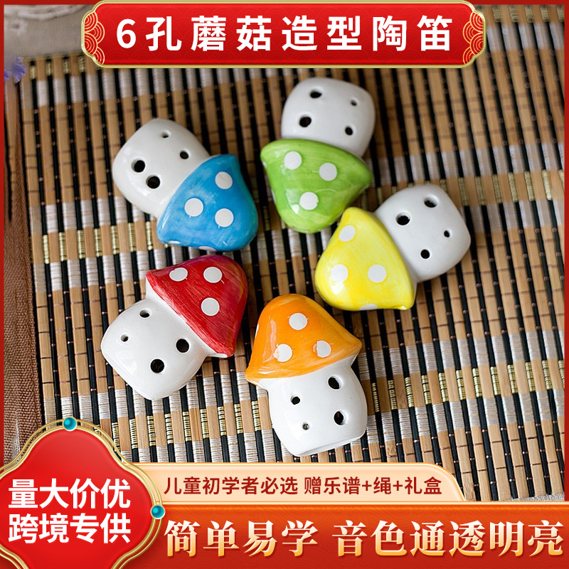 6穴の陶笛の卸売りの小さいキノコの形の子供のおもちゃの民族の楽器の小さい陶笛の工芸品