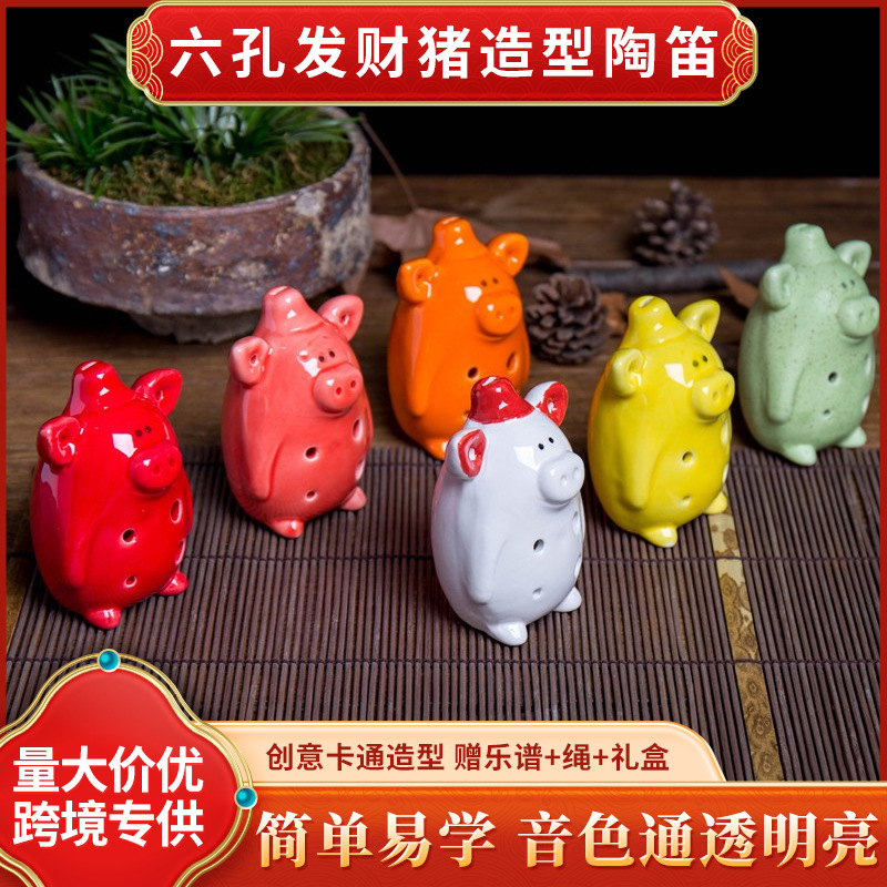 六穴陶笛卸売り動物アニメ造形発財豚陶笛は入門初学観光スポットに適している
