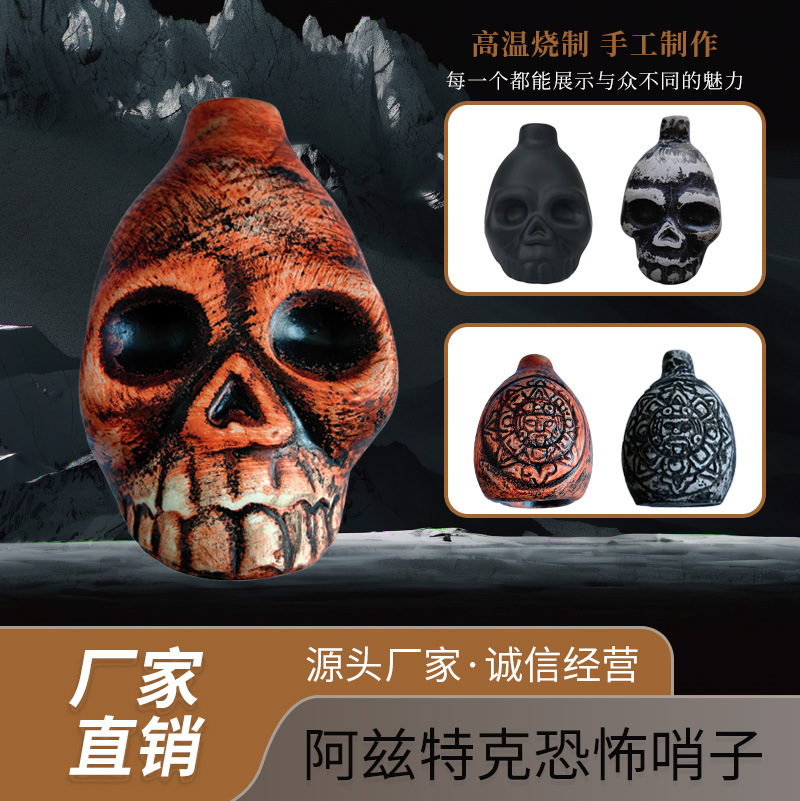 アステカ死鬼ホイッスル楽器悪魔ハロウィーン頭蓋整形陶磁器楽器鬼ホイッスル