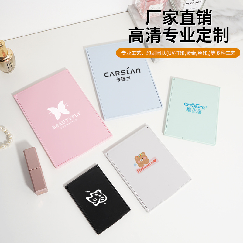 越境EC用折りたたみ式四角形プラスチック化粧鏡、ロゴ印刷可能、卸売、携帯用ビジネスミラー