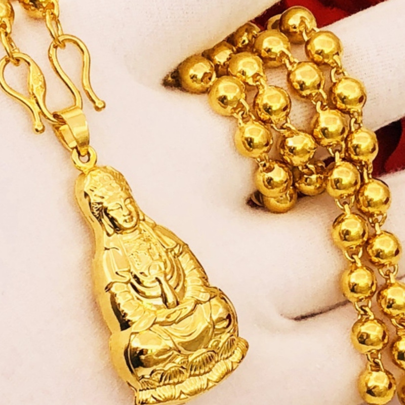 本格的な砂金のネックレスのペンダントは男女の硬貨の銅の金メッキの偽の黄金の観音菩薩のペンダントのペンダントのアクセサリーが長いです。