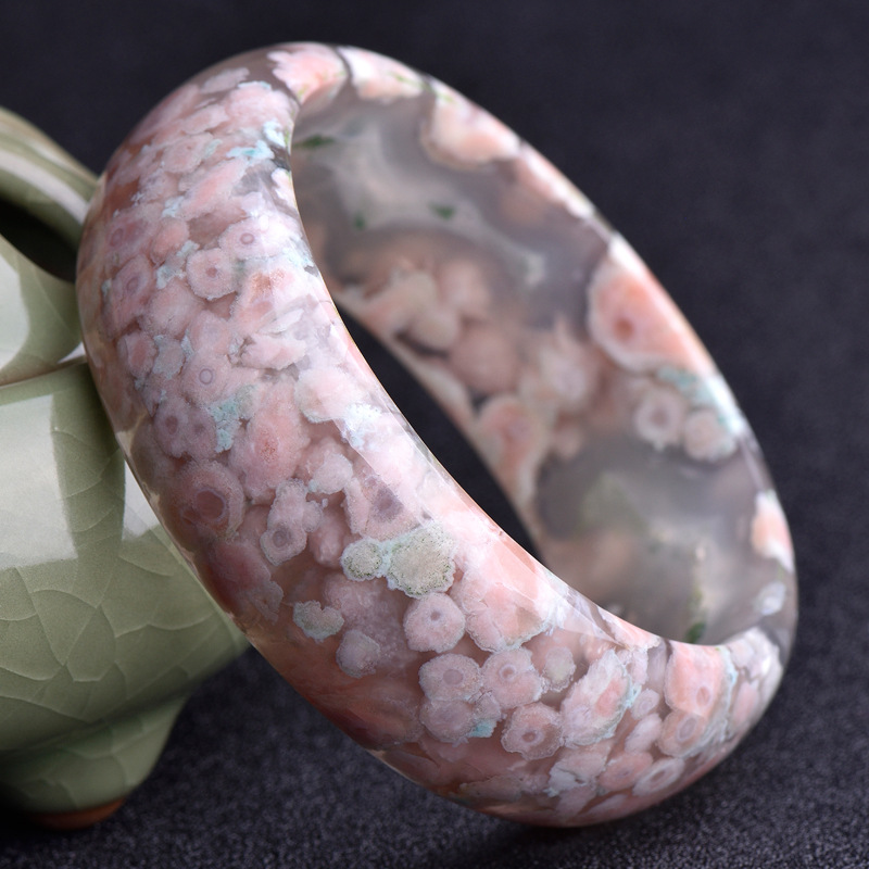 本格的な桜瑪瑙のブレスレットの女性は桃の花の氷を招きます。