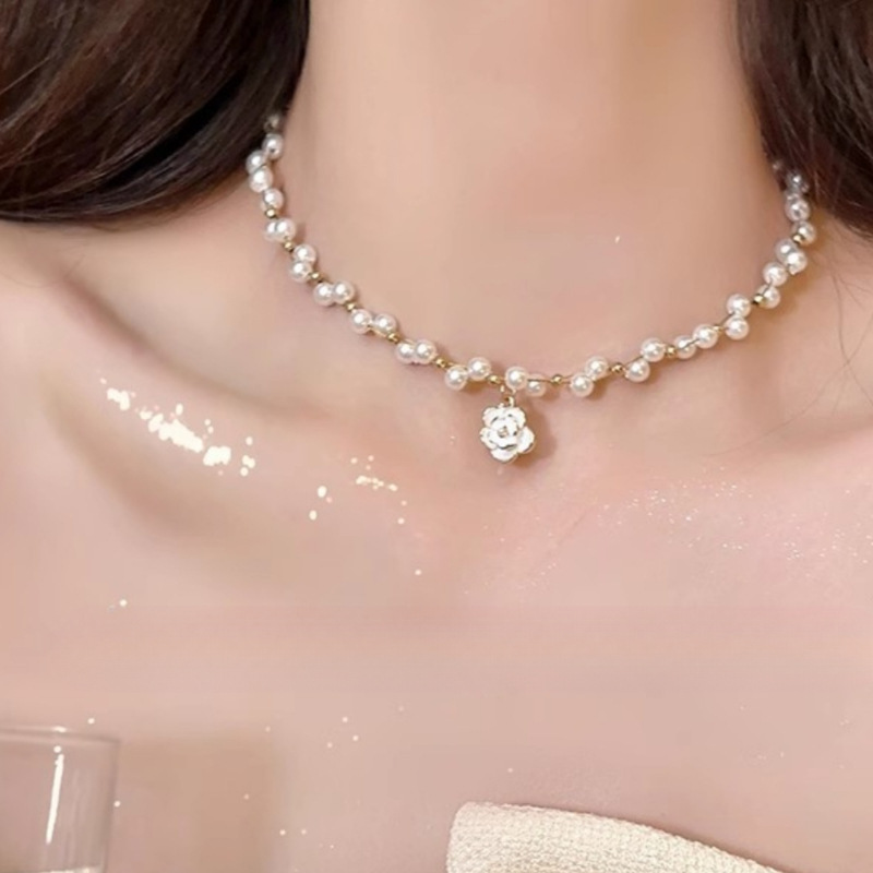 本格的なツバキの花の真珠のネックレスの女性の首の鎖の高級なデザイン感の軽い豪華な小さい大衆の鎖の骨の鎖の2024の新型の装飾品