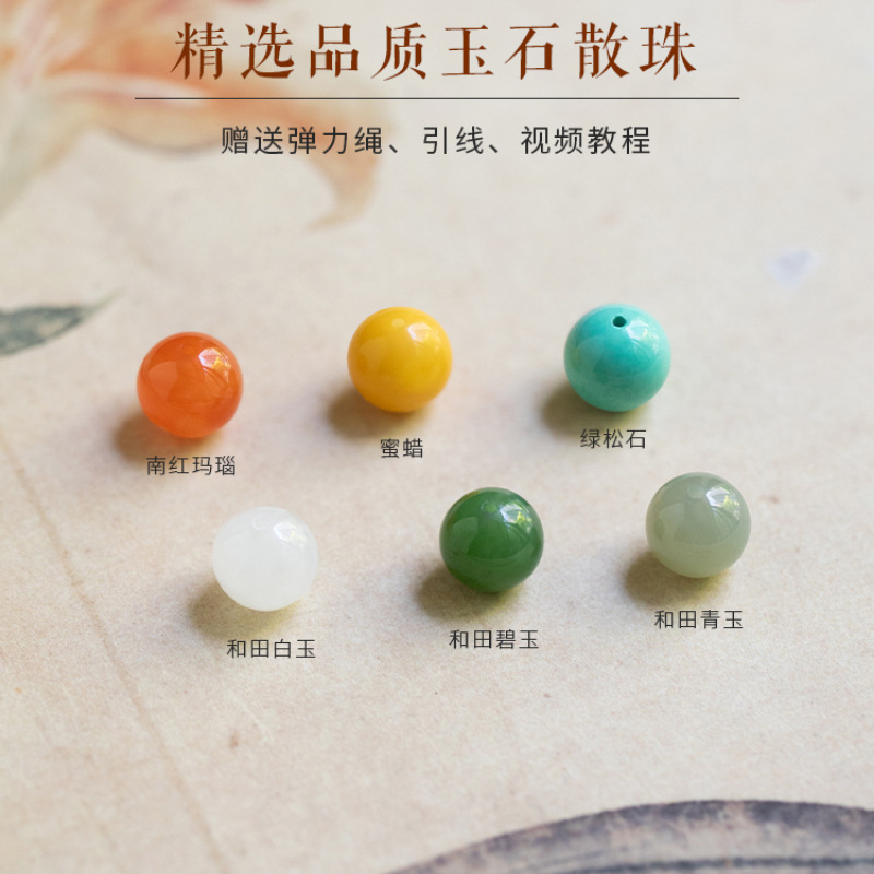正統一念珠子和田玉散珠手串珠南紅瑪瑙数珠ブレスレット緑松石蜜蝋碧玉