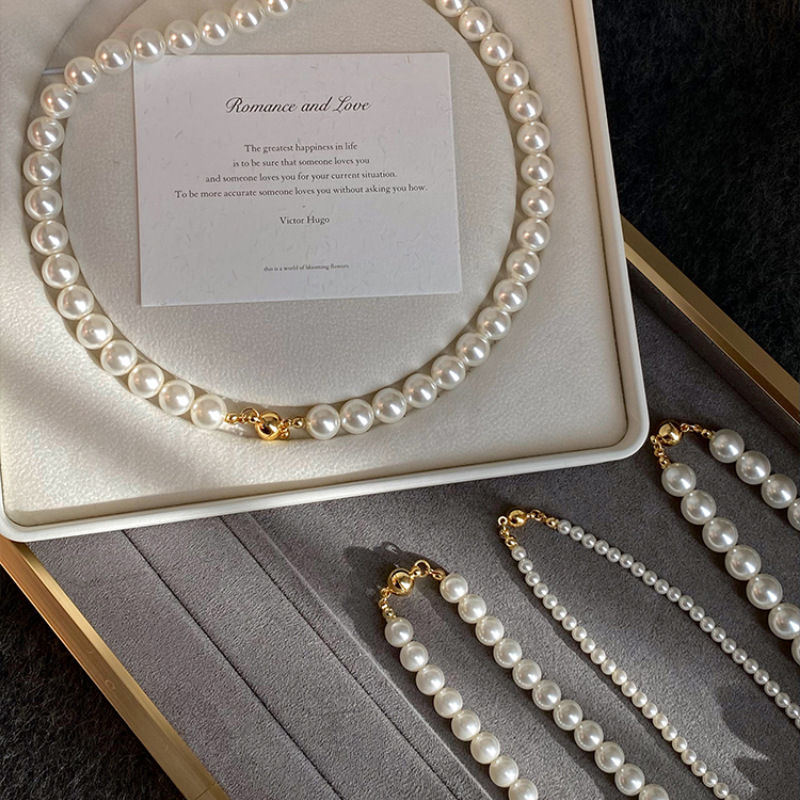 本格的な施家澳白磁気吸引ボタンの真円真珠のネックレスの女性2024の新型はセーターの鎖を重ねて贅沢な気質の首をかぶせます。