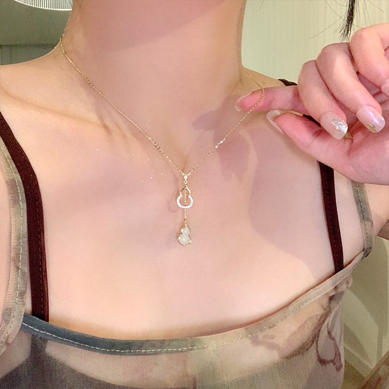 本場S925純銀和田玉瓢箪ネックレス女性モデル軽豪華小衆高級感鎖骨鎖新中国式首鎖