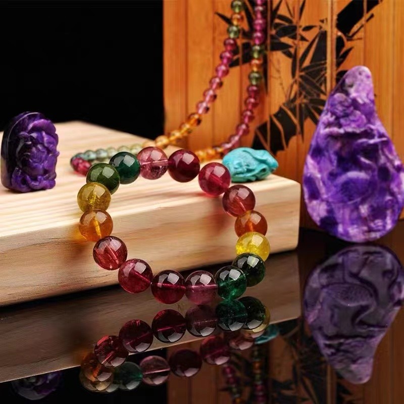 正統舒来碧璽蜜蝋紫水晶ブレスレットペンダント紫牙烏天河石塩源瑪瑙水晶