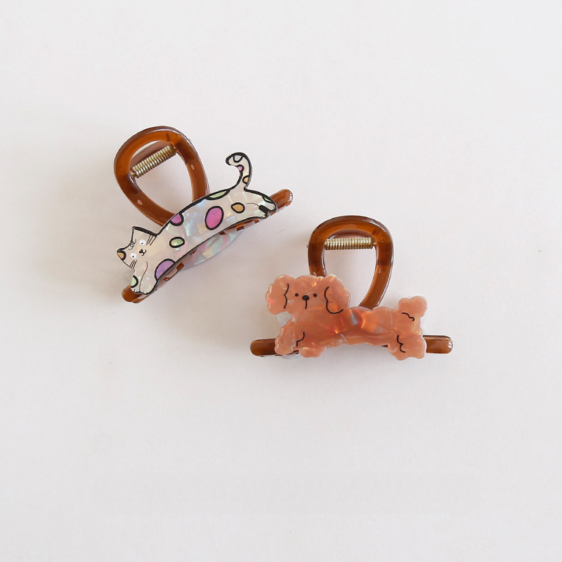 本格的な萌え面白いかわいい子犬の髪は女性の髪をつかんで猫の小動物を捕まえて高級感の後頭部のサメのチャックをつかみます。