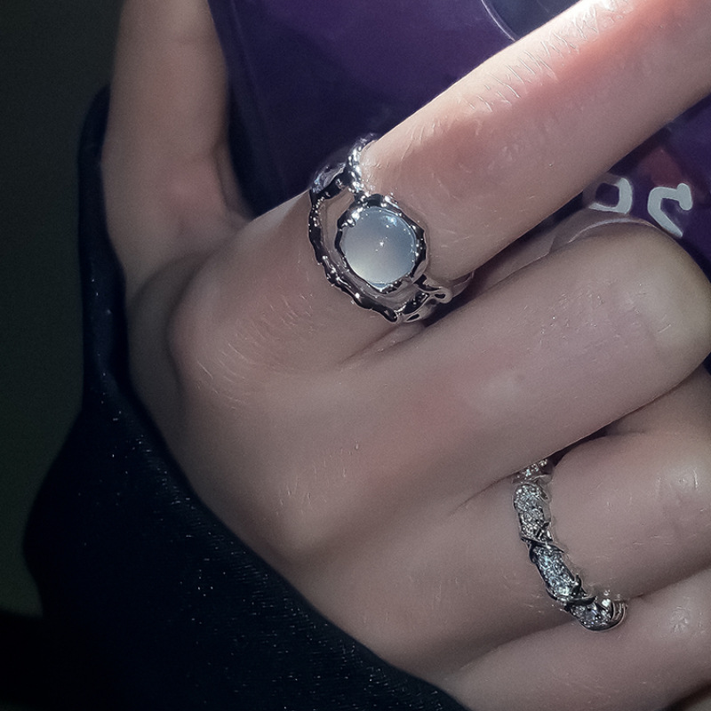 本物の2点セットの月光石の指輪の女性はダイヤモンドを入れて口を開けて戒めます。