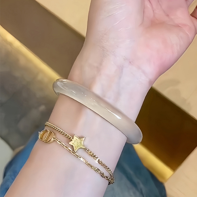 本格的なシャンパンのブレスレットの女性の白い月の光の氷は玉の腕輪の細い平たい円を通して腕輪の美人の条の玉髄の瑪瑙の猫になります。
