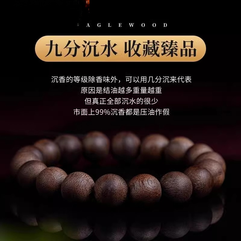 本場九分沈精品ベトナム芽庄奇楠沈香手串男本命年転運珠女カップルのブレスレットが沈んだ