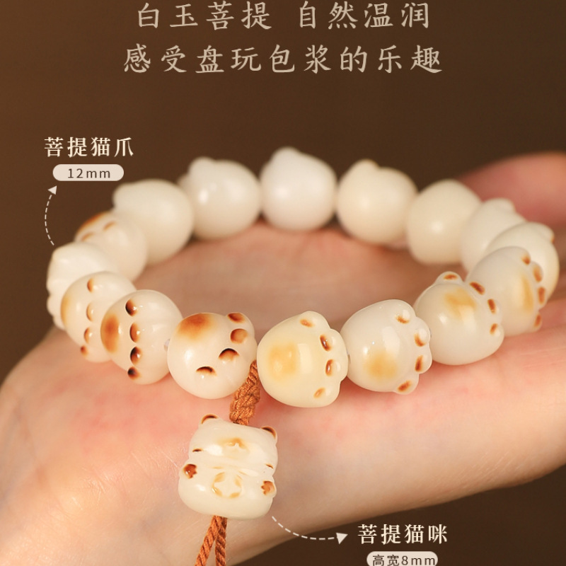 本格炭焼き猫爪菩提根手串七夕プレゼント女性白玉菩提子ブレスレット多宝巻き指柔猫