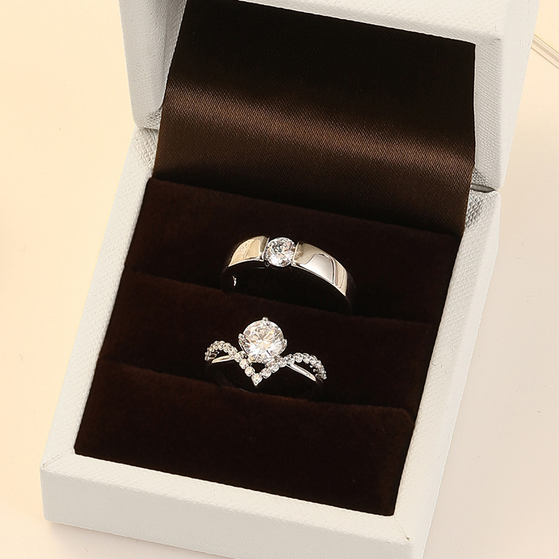 正統の1カラットのシミュレーションのダイヤモンドリングのカップルの指輪の4爪の女性の指輪の活口は結婚のペアリングの結婚式を調節することができます。