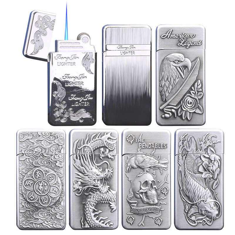Fj682古典的な中国式シンプルなレリーフ砥石直冲防風ライター鷹龍魚頭蓋クロスボーダー卸売り